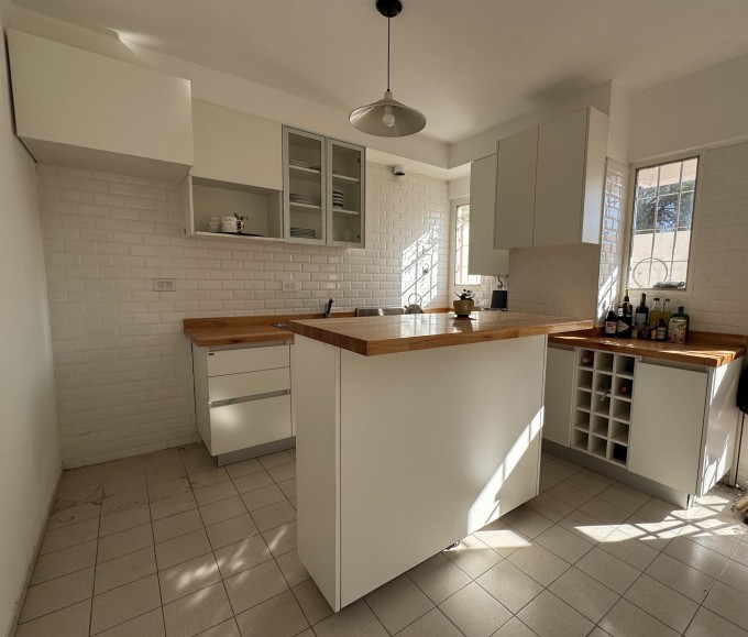 Depto en planta baja totalmente restaurado con patio amplio y cochera. Dos dormitorios y comodo placard en pasillo.