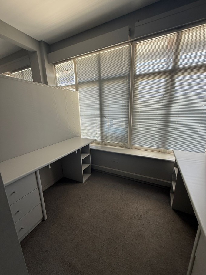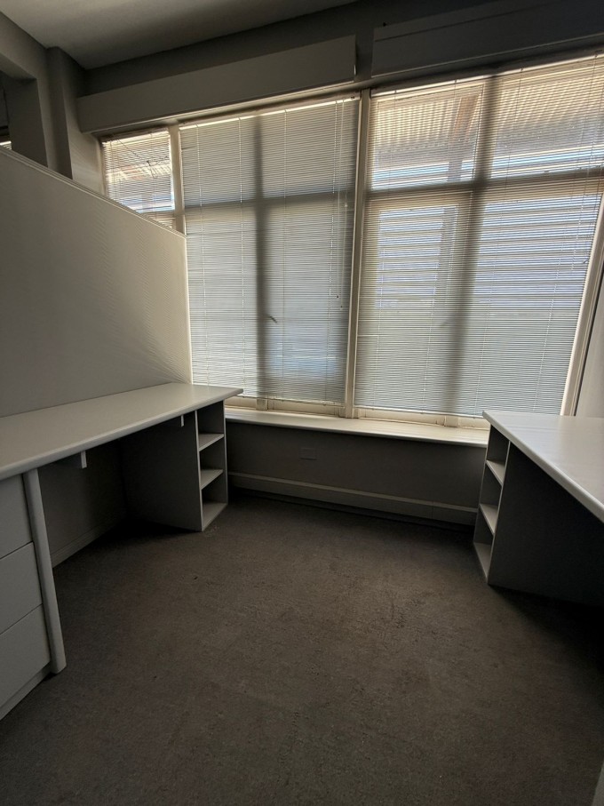 Oficina con 3 despachos y sala de reuniones. Equipada con escritorios y estanterías de guardado.